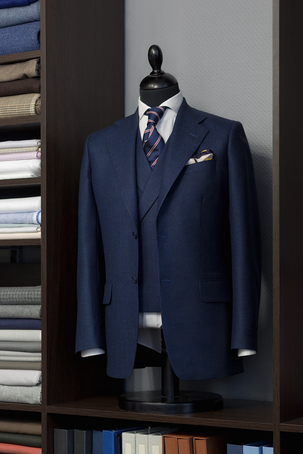 Our entry level custom option, BELLROY suits, offers a wide range of customization options. Choose from a wide variety of fabrics and color swatches, and customize your suit exactly how you want it. Bellroy is available at all store locations.